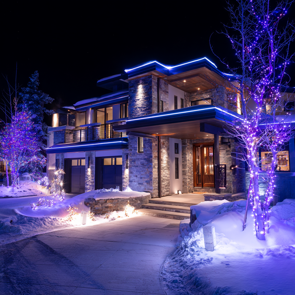 Discover the beauty and convenience of year-round, custom-installed LED lighting designed for Utah’s unique climate. Enjoy endless color options and smart control for your home.